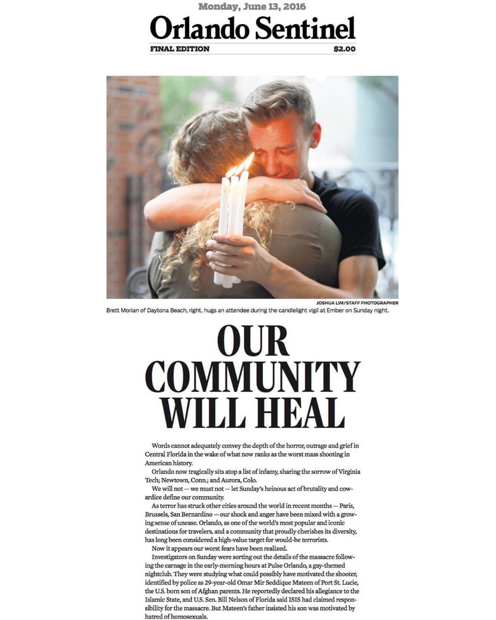 США, газета The Orlando Sentinel: "Наше сообщество залечит раны"