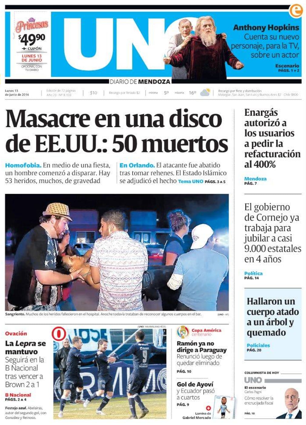 Аргентина, газета Diario de Mendoza: "Бойня на дискотеке в США: 50 человек убиты"