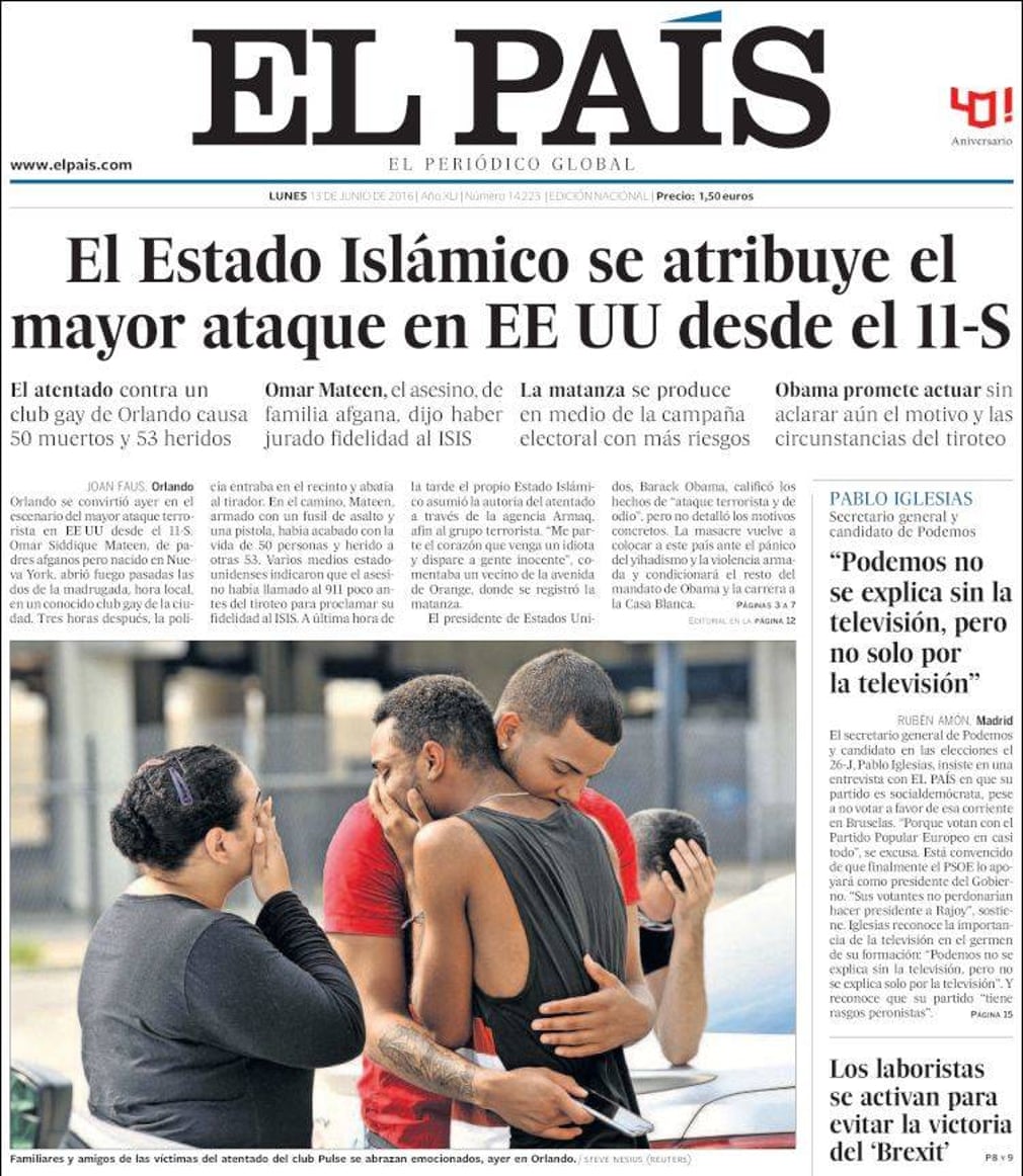 Update составил подборку первых полос мировых газет, посвященных стрельбе в Орландо. Картина в мировых СМИ показывает, как глубоко это ужасное событие затронуло не только ЛГБТ-сообщество, но и каждого цивилизованного человека на планете.