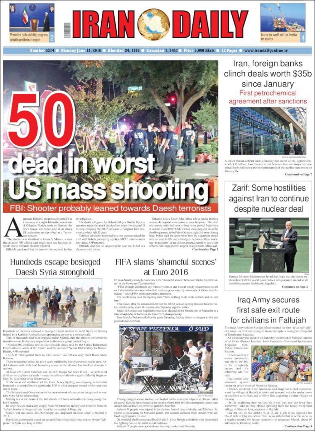 Иран, газета The Iran Daily: "50 человек погибло в результате худшего в истории США массового расстрела"