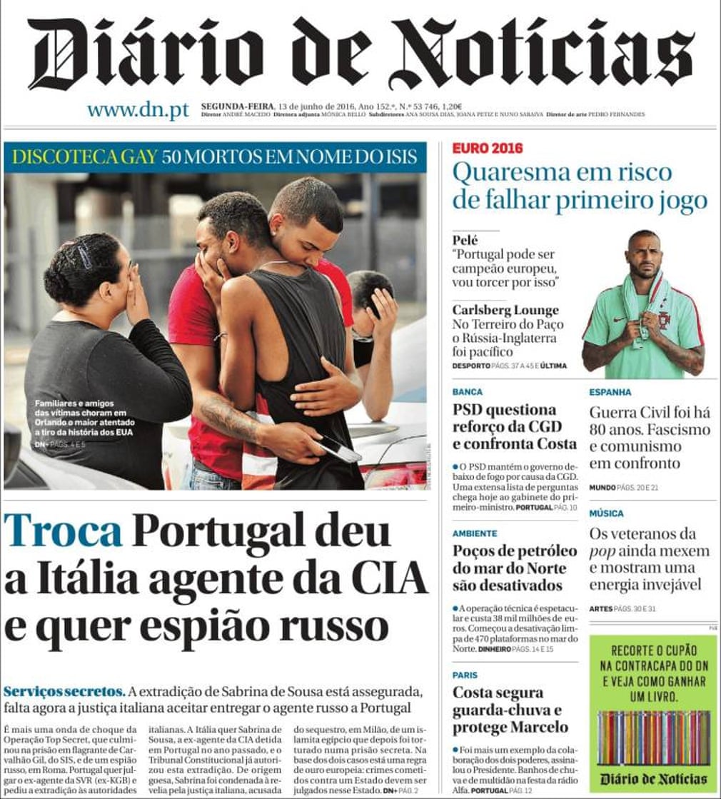 Португалия, газета Diario de Noticias: "50 человек убиты в гей-клубе во имя ИГИЛа"