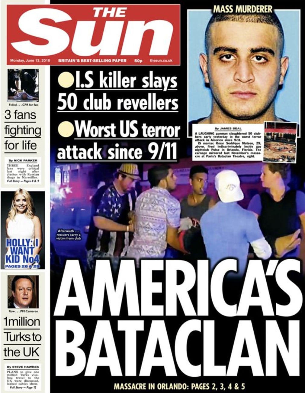 Великобритания, газета The Sun: "Убийца из ИГИЛа убил 50 посетителей клуба, совершив самый ужасный теракт со времен 11 сентября"