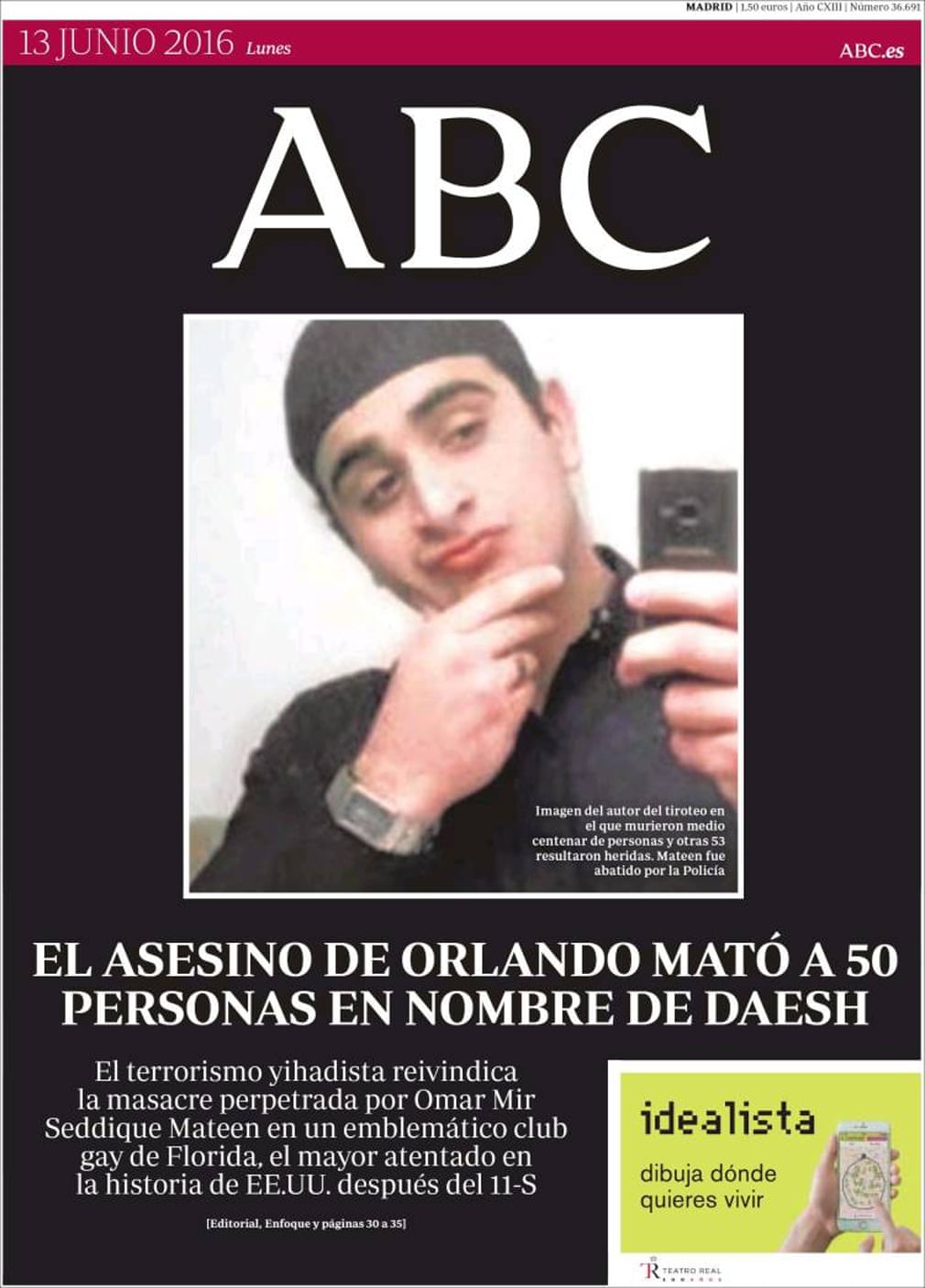 Испания, газета ABC: "Стрелок убил 50 человек в Орландо во имя ИГИЛа"