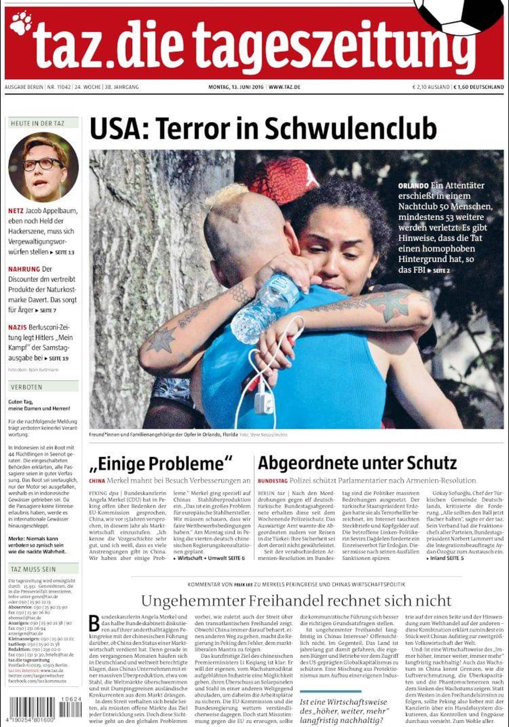 Германия, газета Die tageszeitung: "США: террор в гей-клубе"
