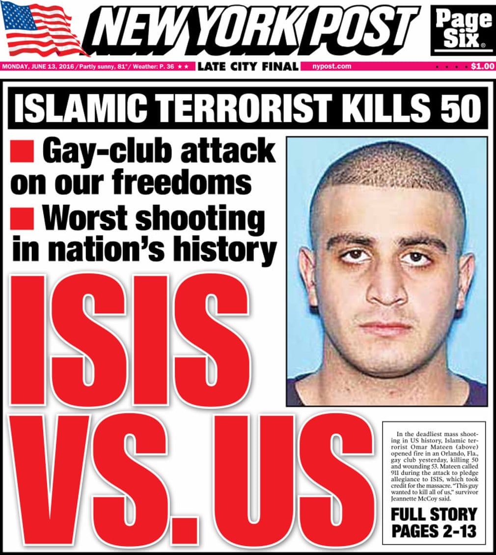 США, газета The New York Post: "ИГИЛ против США. Исламский террорист убил 50 человек"