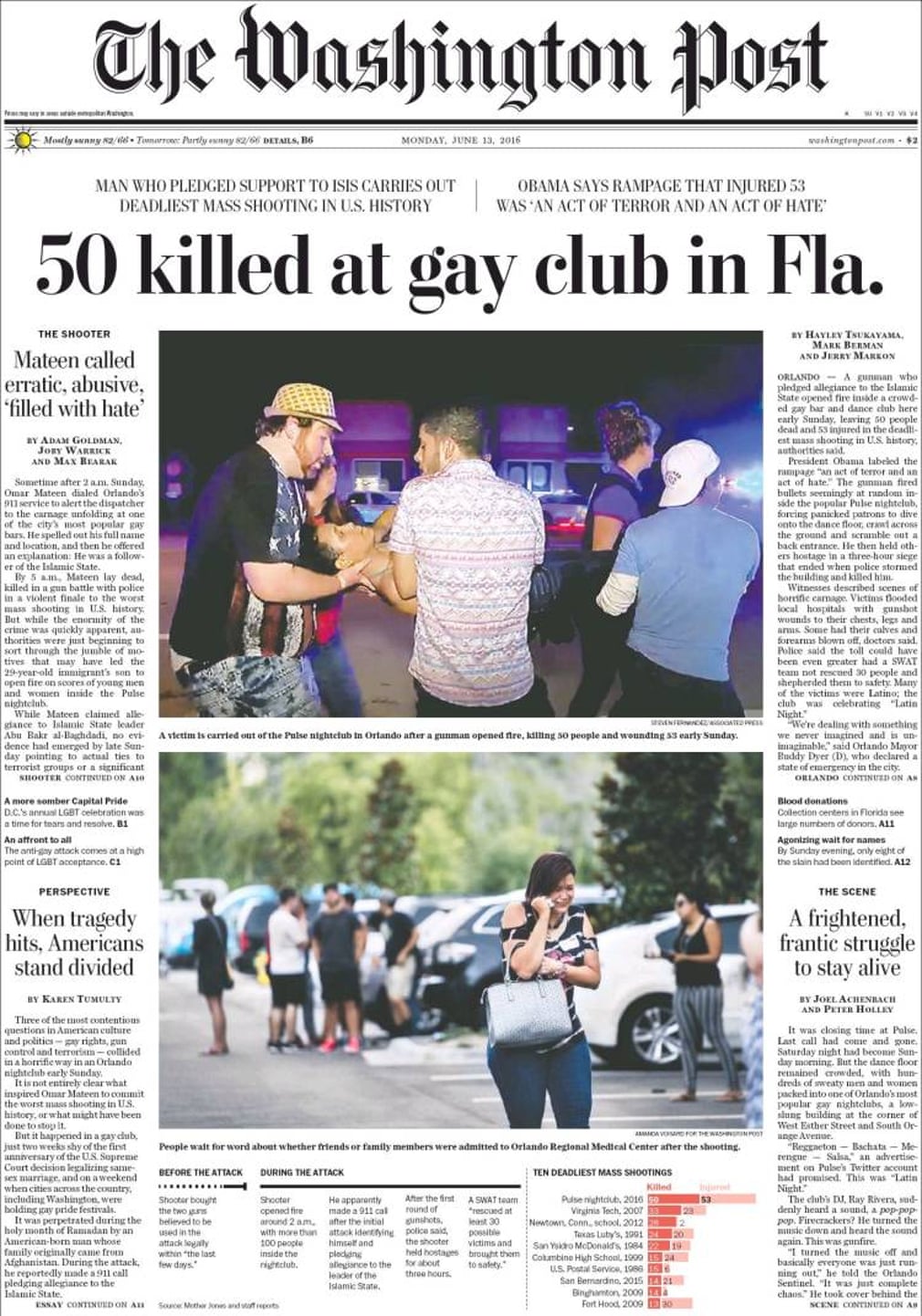 США, газета The Washington Post: "50 убитых в гей-клубе во Флориде"