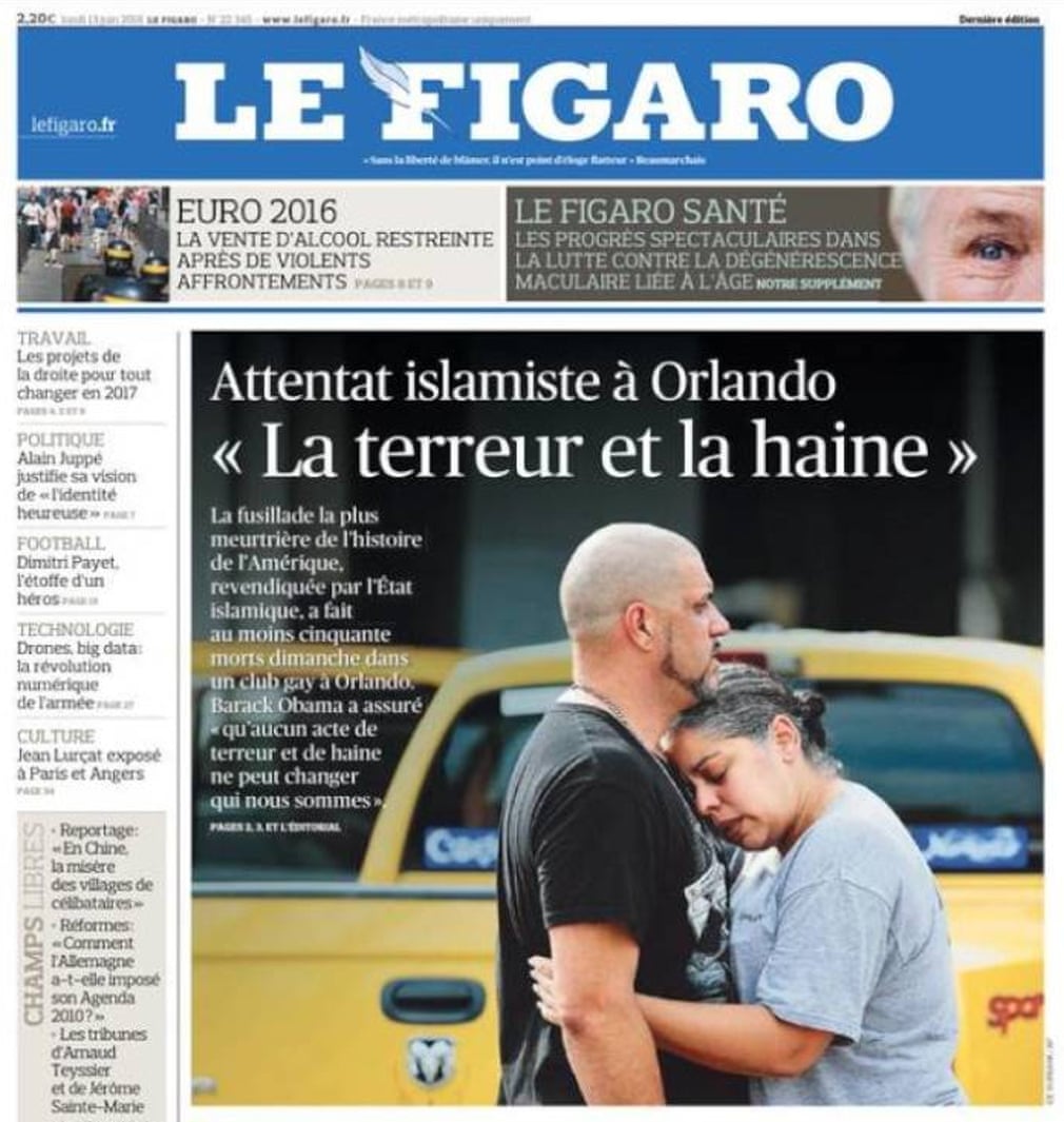 Франция, газета Le Figaro: "Атака исламиста в Орландо: преступление на почве ненависти"